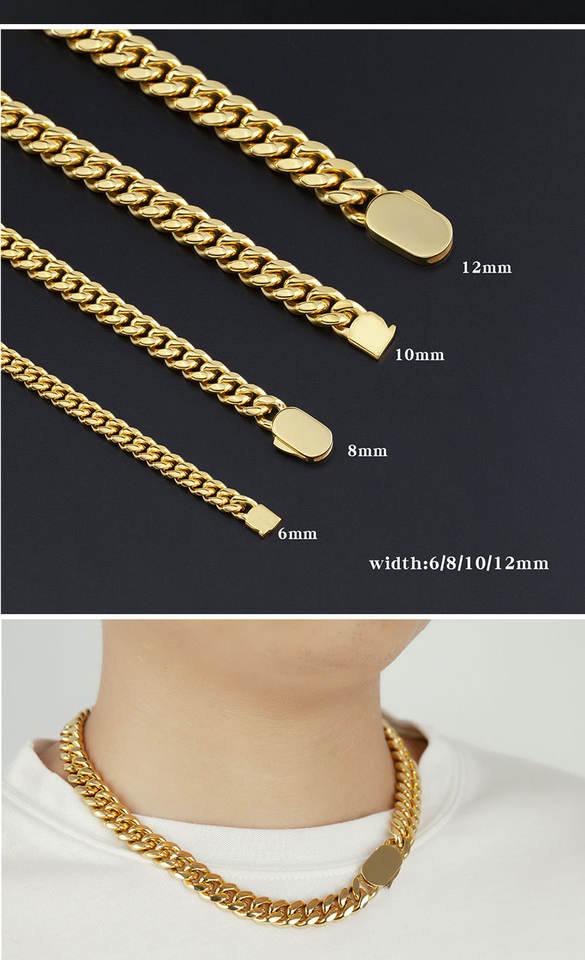 Collar de Cadena Cubana de Hip Hop Personalizado, Chapado en Oro de 18k para Hombre, Cadena Cubana de Acero Inoxidable Estilo Miami