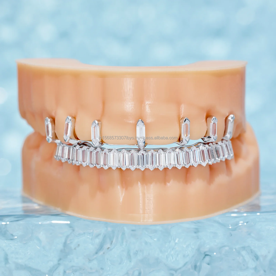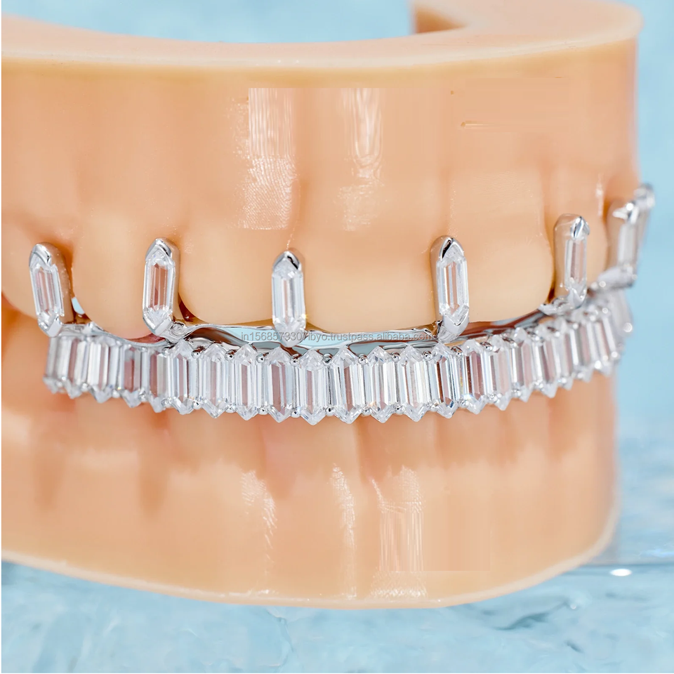 Custom Hip Hop Jewelry Teeth Top & Dowm 925 Silver Vvs Elongated Hexagon Cut Diamond Totalmente Iced Out Moissanite Grillz para hombres