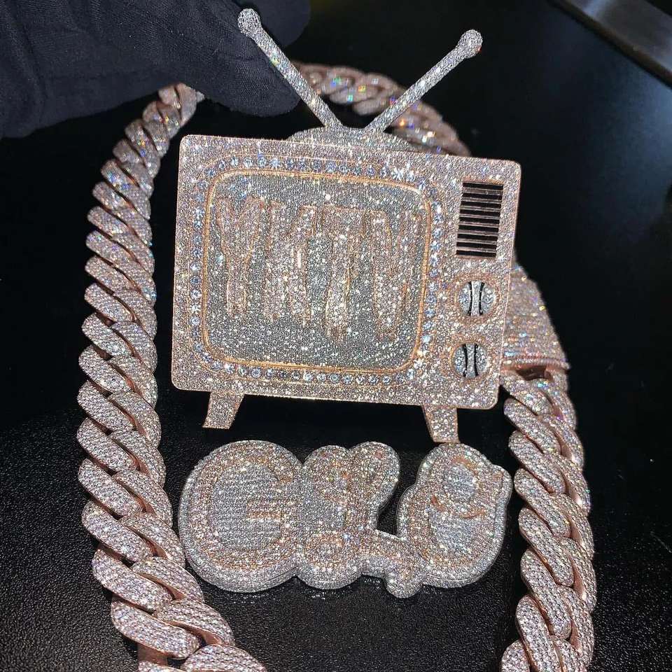 Personalizado Hip Hop Moissanite diamante letra colgante Iced Out VVS diamante moda 925 Plata nombre letra colgante joyería para hombres