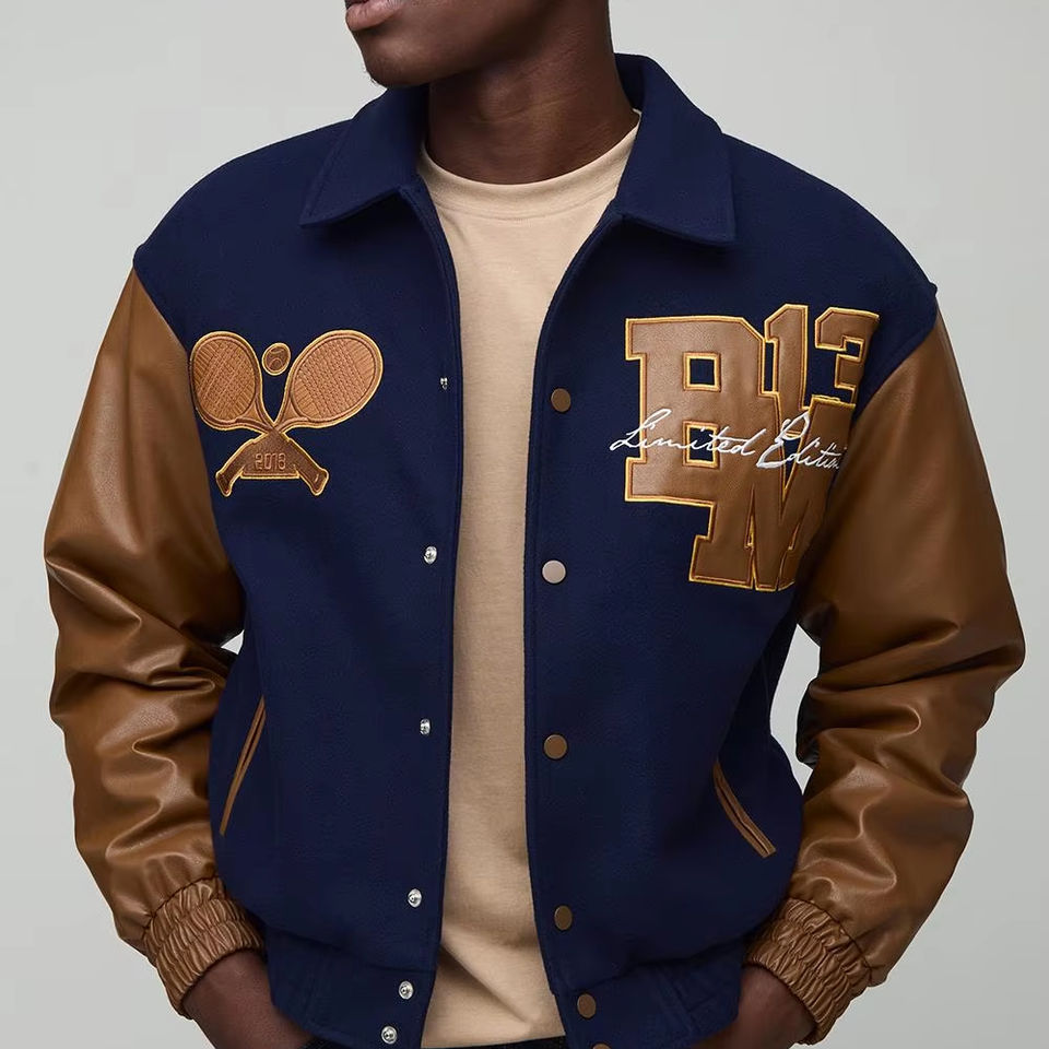Ropa informal de estilo Hip Hop personalizada, chaqueta con letras de talla grande, chaquetas personalizadas para hombre con logotipo bordado Vintage