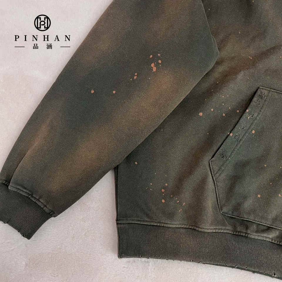 Sudadera con capucha personalizada en algodón de alto peso/poli Vintage envejecido lavado tinta salpicadura diseño Sudadera con capucha