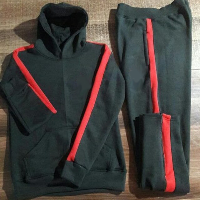 Sudadera con capucha personalizada y chándal de pierna recta para hombre, chándal de peso pesado con rayas laterales, traje de jogging completo para hombre