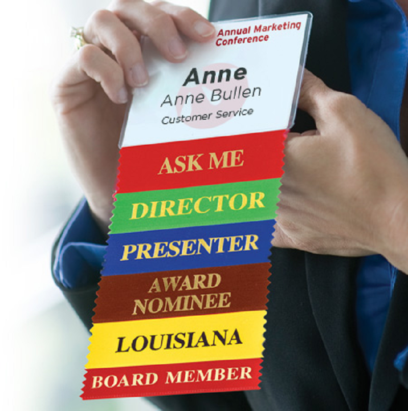 Cintas de credenciales horizontales apilables de poliéster personalizadas, placas con nombre autoadhesivas para conferencias, impresión offset