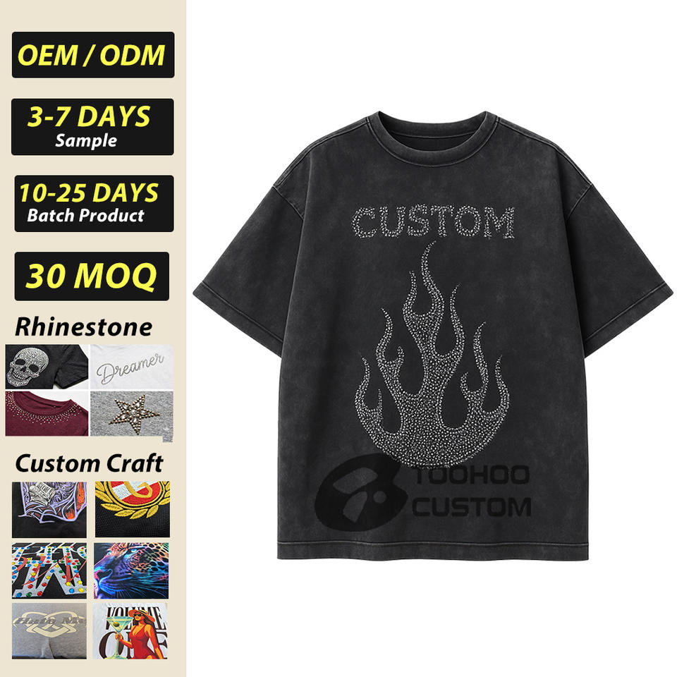 Camiseta Personalizada con Logotipo de Pedrería Termoadhesiva, Tejido de Punto de 300 g/m², 100% Algodón, Manga Corta, Diseño Gráfico, Corte Cuadrado, Hombros Caídos, para Hombre