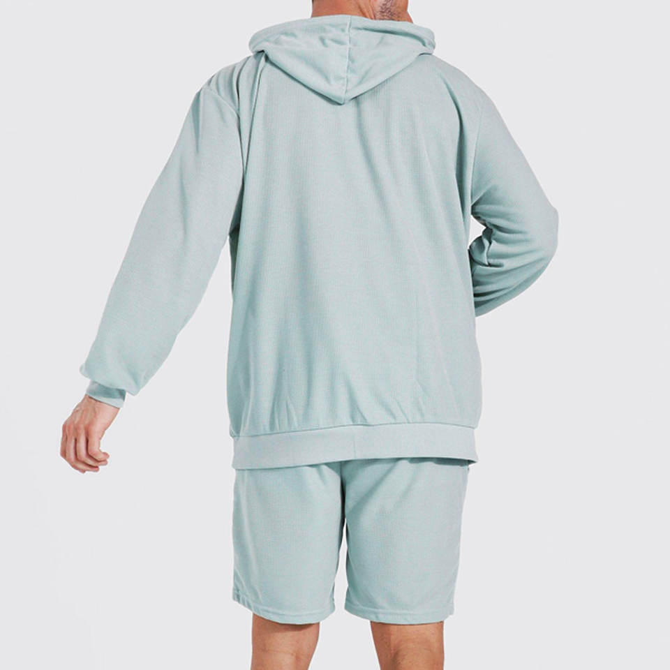 Gran Oferta personalizada de verano de alta calidad de manga larga con capucha para hombre, conjunto de 2 piezas, pantalones cortos, chándales ajustados para hombre 2022