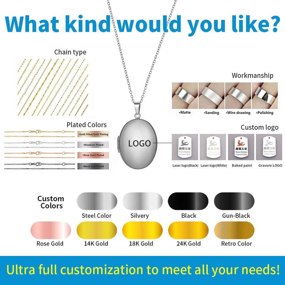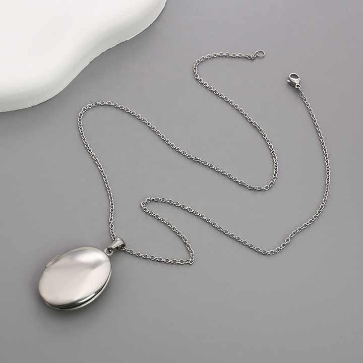 Collar con Colgante de Medallón Ovalado Hipoalergénico Personalizable, Abrible, Grabado, para Guardar Recuerdos de Seres Queridos, Regalo Sentimental