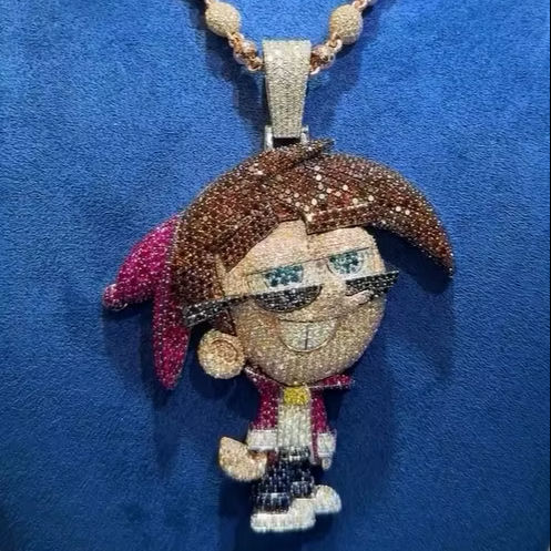 Colgante de dibujos animados personalizado con incrustaciones de moissanita VVS en plata 925 y esmalte, joyería Hip Hop de lujo con diseño de grupo de dibujos animados personalizado