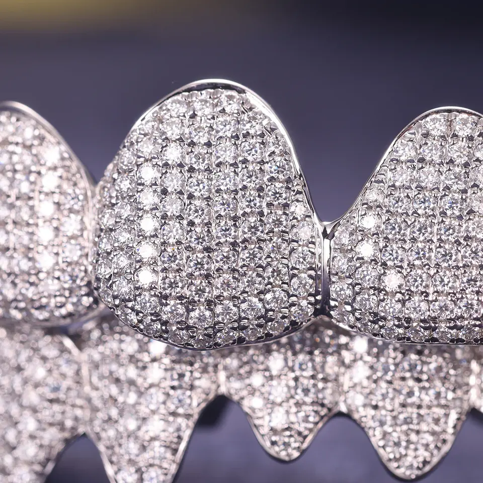 Custom Iced Out Fine Grillz 925 Sterling Silver Lab Grown Diamonds 16 Dientes