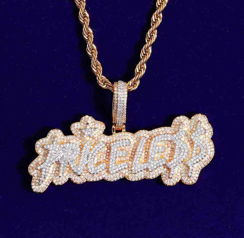 Colgante Personalizado con Nombre en Moissanita de 18 Quilates, Chapado en Oro y Plata, Bonito Estilo Hip Hop en Plata de Ley