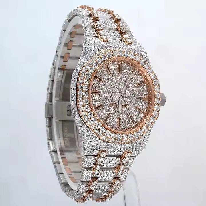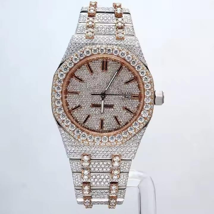 Relojes de Cuarzo Mecánicos Personalizados con Incrustaciones de Moissanita que Pasan la Prueba del Diamante, de Plata de Ley 925