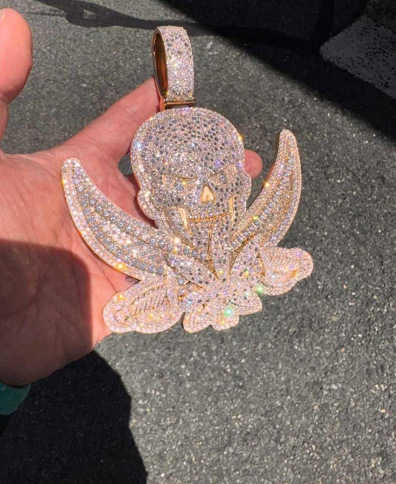 Collar Hip Hop Personalizado con Colgante de Calavera y Espadas con Diamantes Moissanite, Chapado en Oro Rosa, para Hombre, Venta al por Mayor y Pedidos Personalizados
