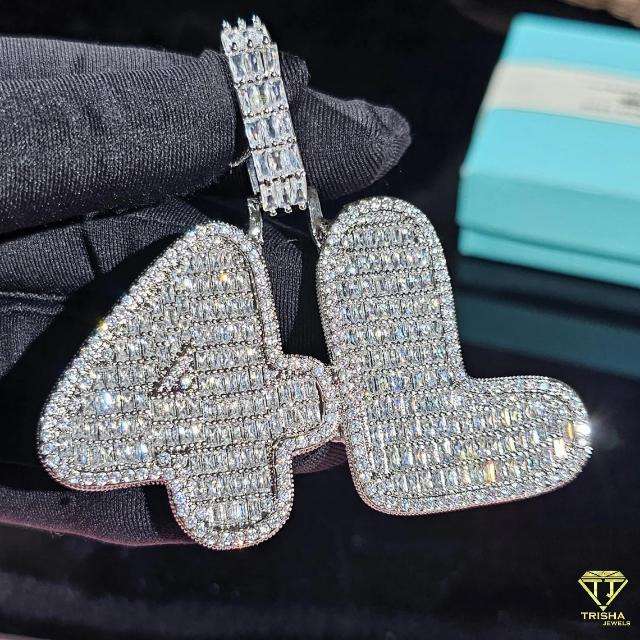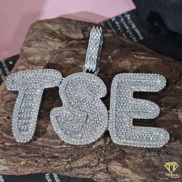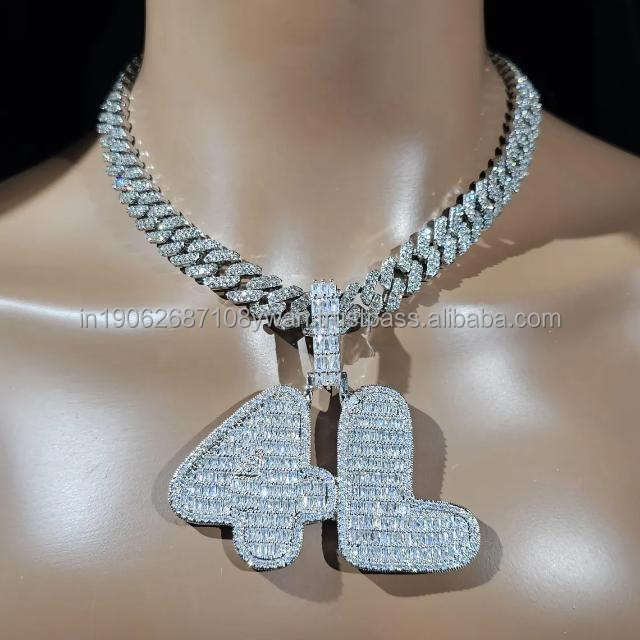 Colgante personalizado de letras grandes de Baguette helado en diamantes de moissanita VVS con joyería de Hip Hop personalizada de Plata de Ley 925