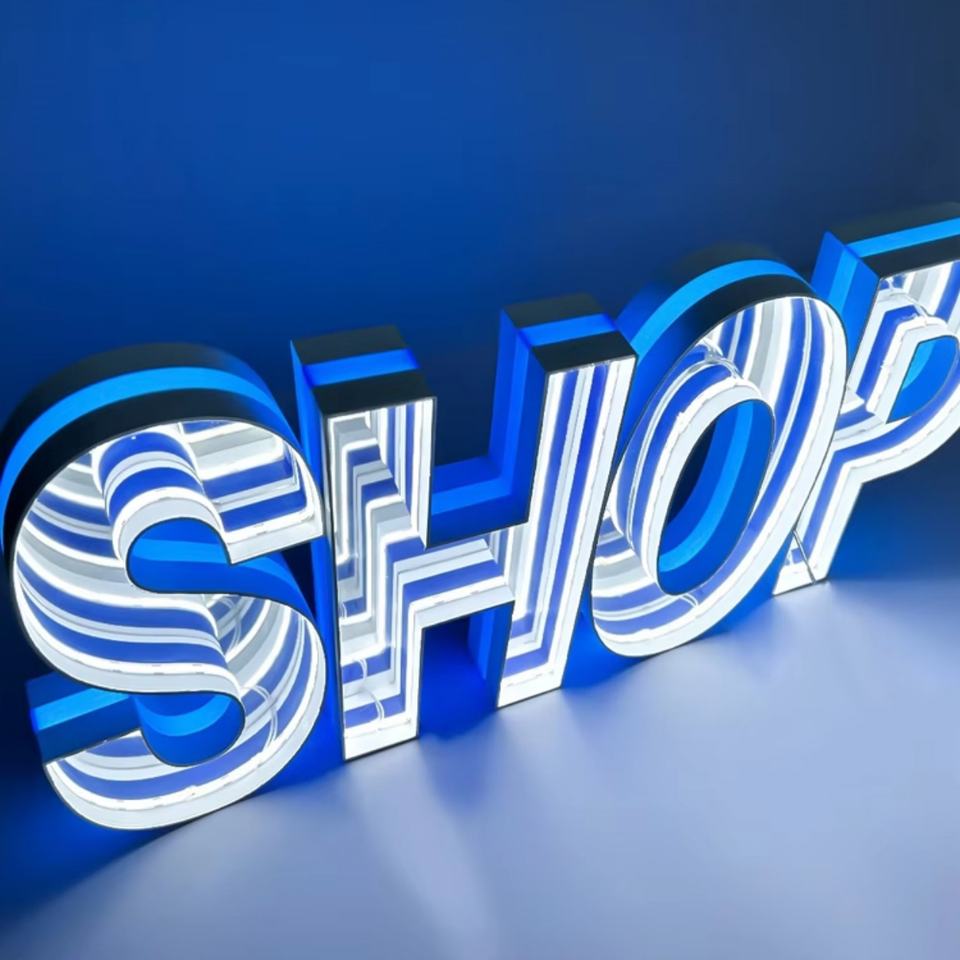 Letrero Luminoso con Letras LED de Espejo Infinito Personalizado, Letras 3D, Letrero Publicitario LED para Tienda