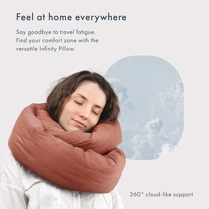 Almohada de Viaje Personalizada Infinity, Suave, con Soporte para el Cuello, Tipo Bufanda, para Dormir en Casa, Color Terracota, OEM ODM