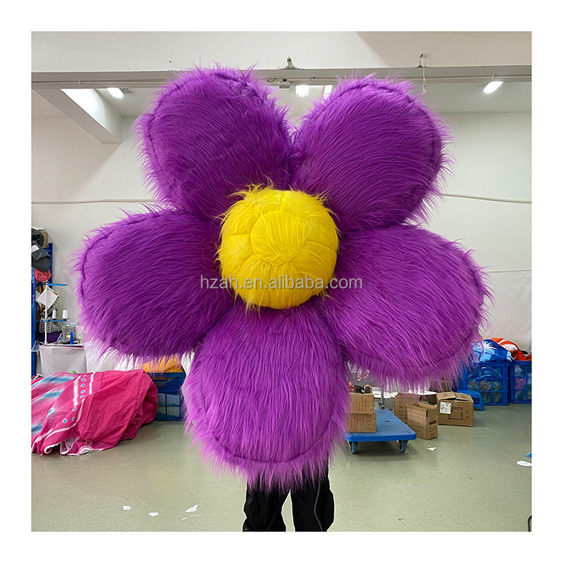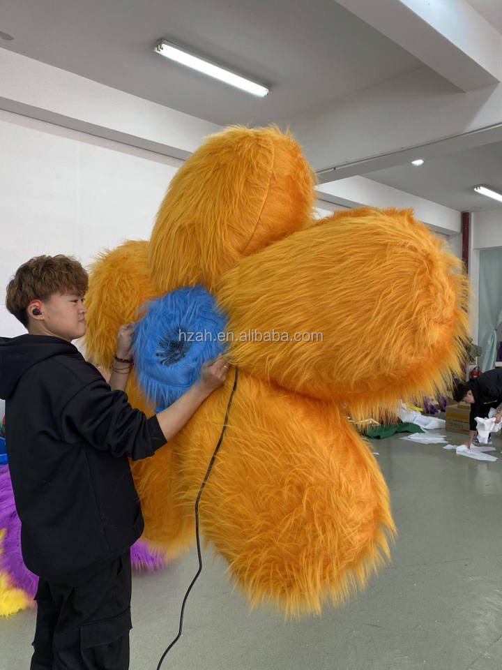 Flor de margaritas de felpa amarilla inflable personalizada, accesorios de flores de piel inflables para decoración de techo de escenario