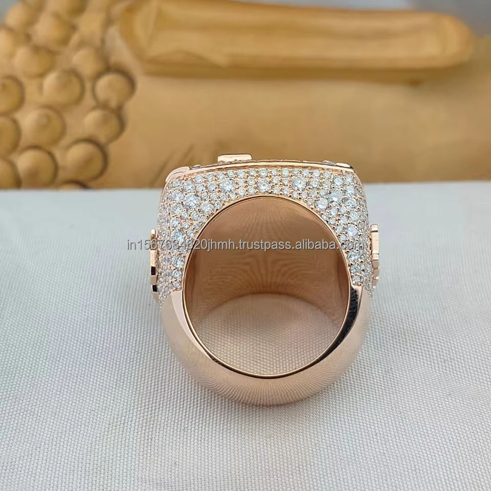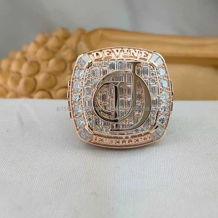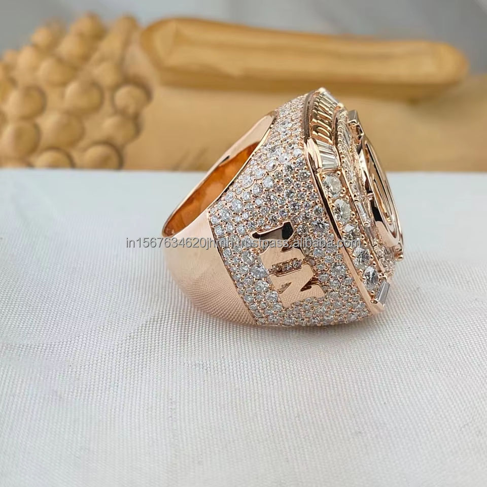 Anillo de Diamantes con Iniciales Personalizadas en Oro Rosa, Anillo de Lujo con Diamantes Baguette y Redondos | Joyería de Moda Hip Hop para Hombres y Mujeres