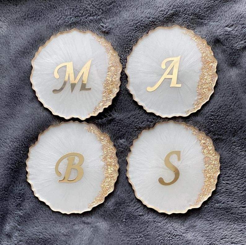 Posavasos de Resina de Ágata con Iniciales Personalizadas, Borde Dorado, Lujoso, de Mármol, Recuerdos de Boda, Alfabeto Personalizado, Tapete para Bebidas, Base para Tazas para el Hogar