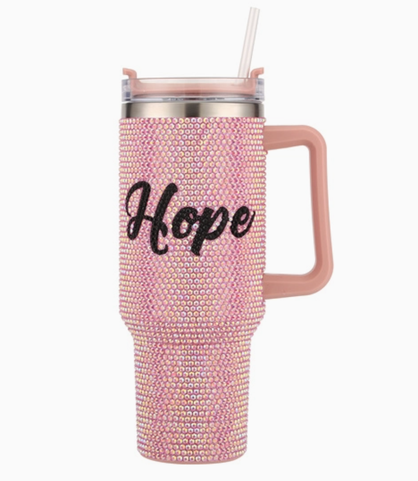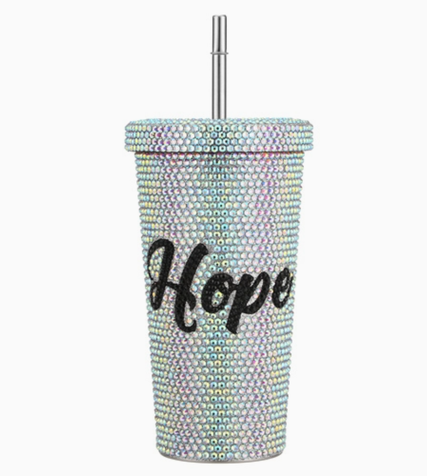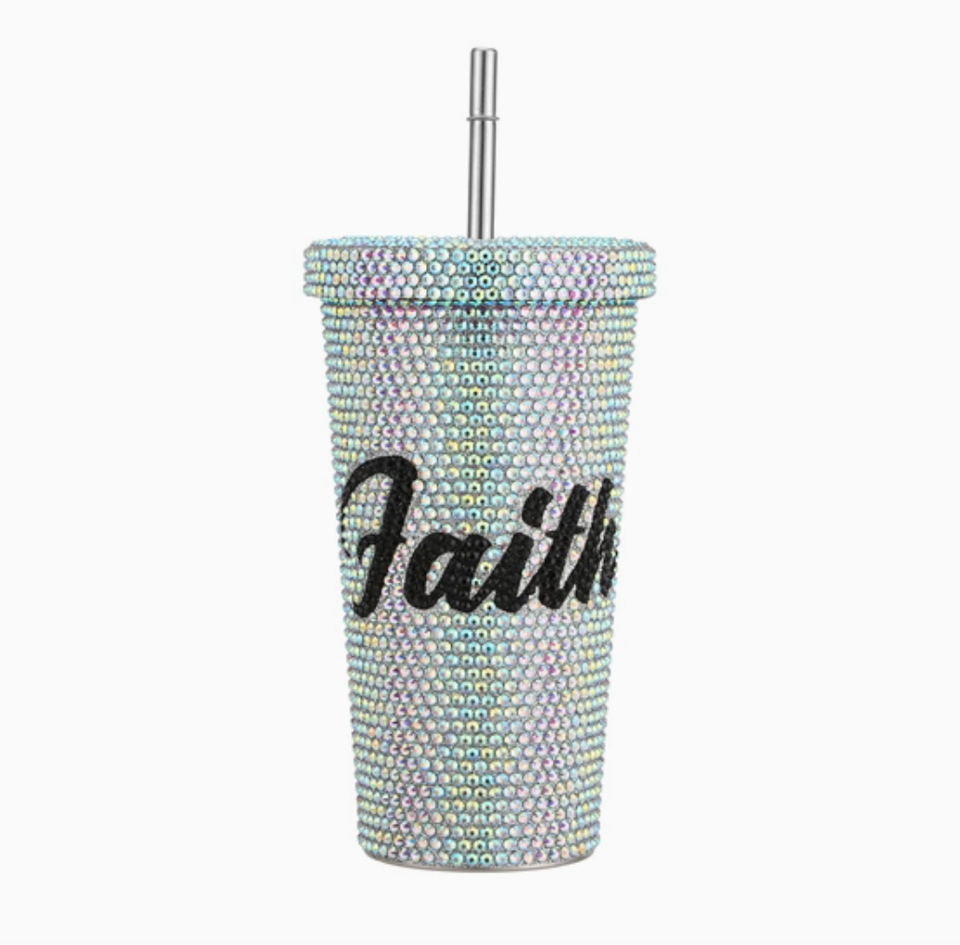 Tazas de Café y Agua de Acero Inoxidable de 17 oz con Logotipo Personalizado, Diseño Clásico de Fe y Esperanza con Pedrería Plateada, para Camping, con Tapas