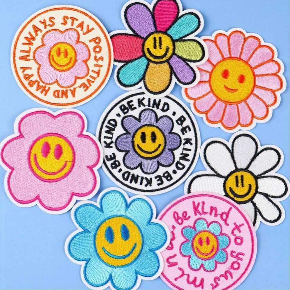 Custom Iron on Embroidered Colorful Smile Face Sun Flower Patches for Clothing Bag Decoration