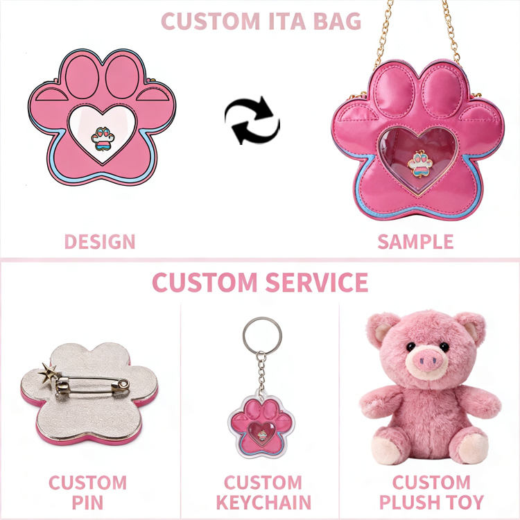 Bolso Ita Personalizado, Tamaño y Estilo a su Gusto, Accesorios, Bolso Ita con Estampado de Huellas, Bolso de Mano de Gamuza Marrón
