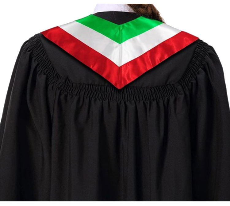 Estola de satén con bandera nacional italiana personalizada con faja de graduación universitaria bordada para uso escolar
