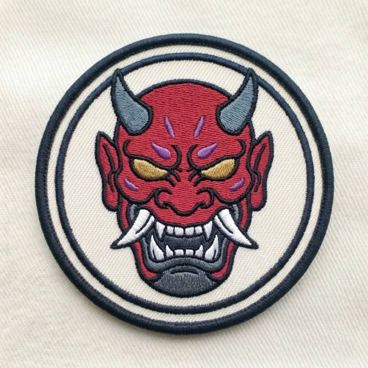 Parche Bordado Personalizado de Demonio Oni Japonés, Máscara Hannya Roja, Insignia Termoadhesiva, Aplique de Bordado a Máquina para Streetwear, Venta al por Mayor y a Granel