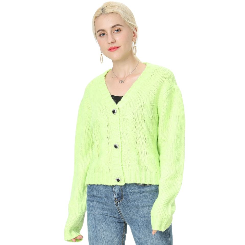 Cárdigan de punto con botones enjoyados personalizados para mujer, suéter informal de manga larga de invierno