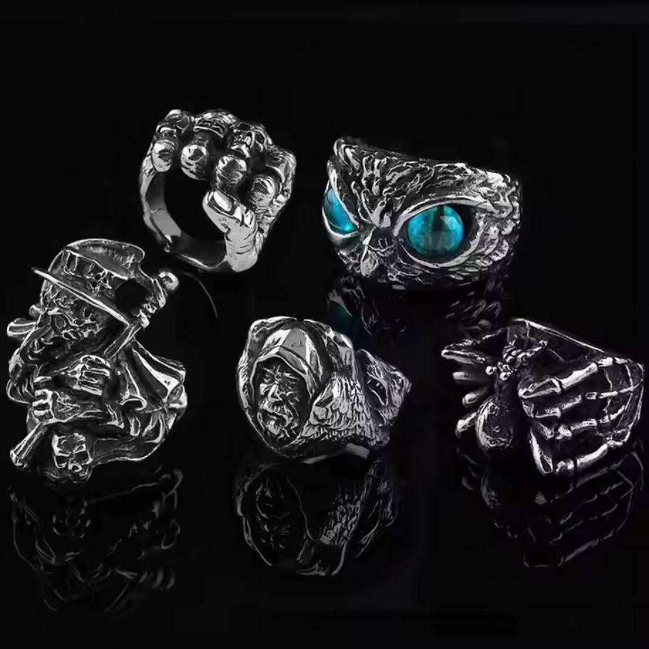 Anillos Personalizados de Joyería Vintage Punk con Diseños de Animales para Hombre: Águila, Dragón, Cruz, Espíritu, Araña. Anillo Abierto Ajustable al por Mayor.