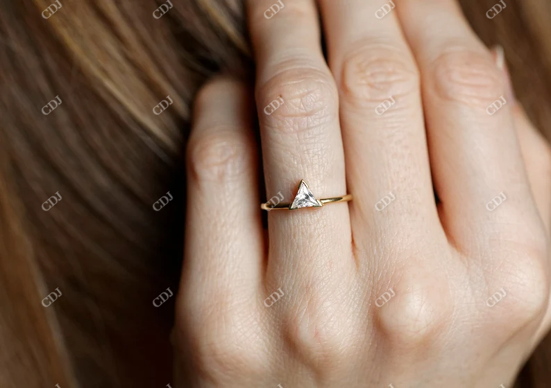 Triángulo Moissanite Diamond 14K oro amarillo piedra única Simple elegante solitario anillo de compromiso para mujeres fabricación India