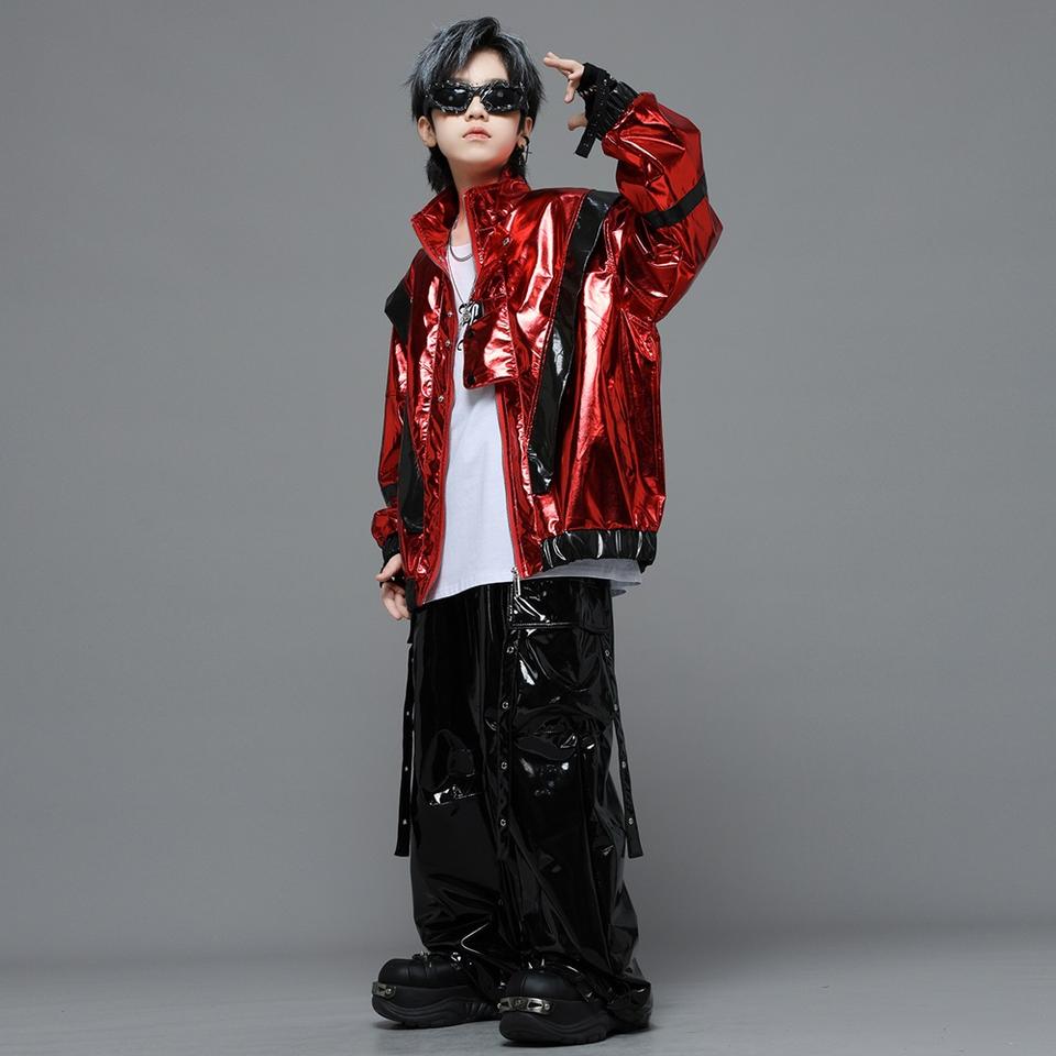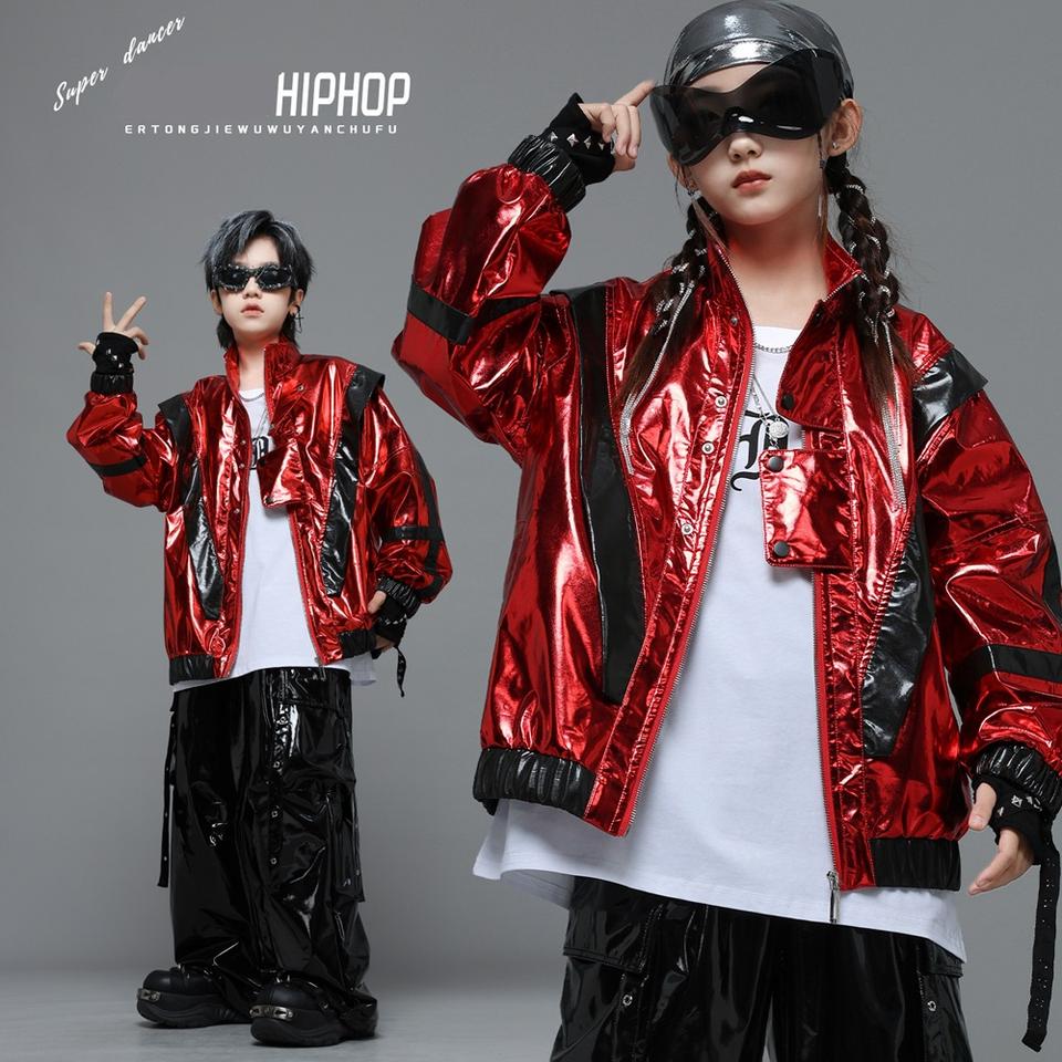 Conjunto de Ropa de Hip Hop y Jazz para Niños, Disfraz de Baile para Niñas, Ropa Urbana de Cuero Sintético para Niños para Pasarela y Escenario