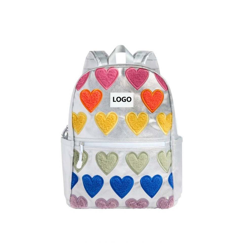 Nombre del producto:Mochila Escolar Metálica de Felpa con Corazones