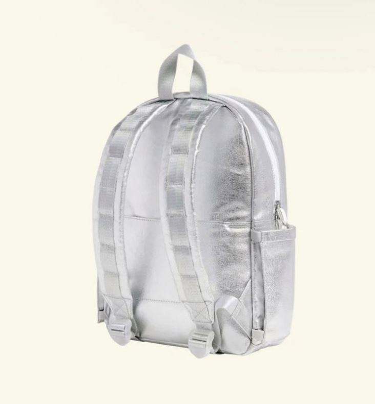 Mochila de Viaje Mini Personalizada para Niños, Mochila Metálica con Corazones de Peluche para Niña, Bolsa Escolar Plateada