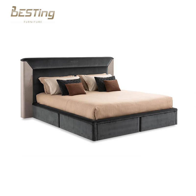 Cama de cuero italiana tamaño King personalizada, cama moderna de lujo, juego de marco de madera de chapa, muebles de dormitorio, cama