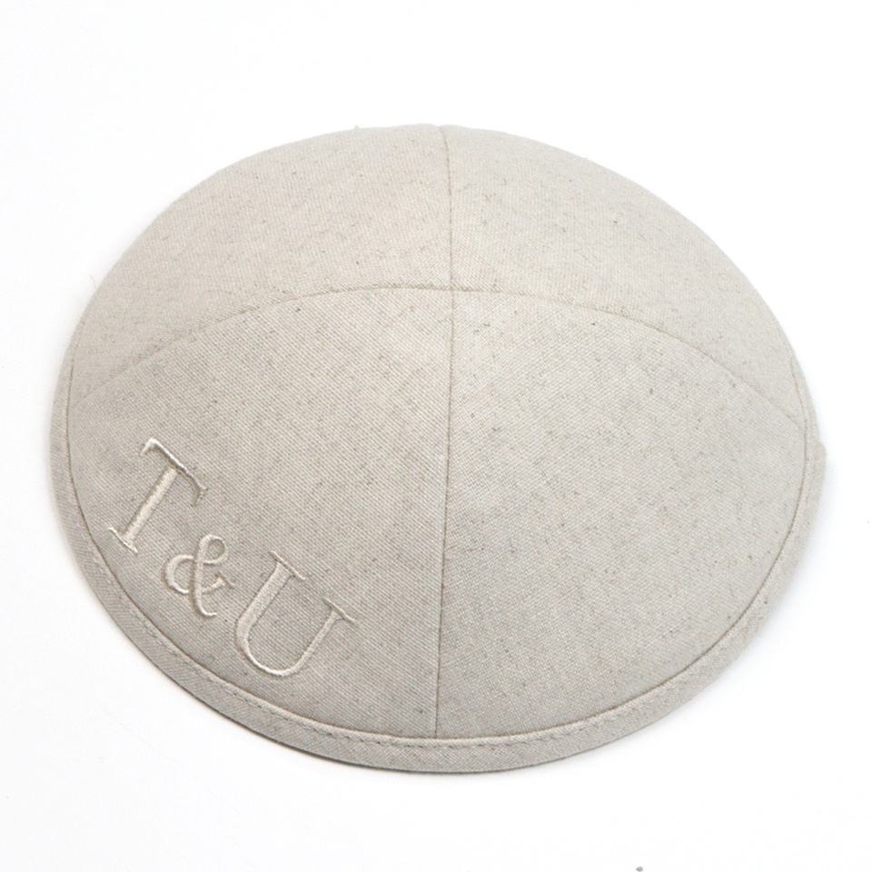 Personalizado Kipá bordado Logo judío Kippot Boda REGALOS Lino Kippot Yarmulke Kipa Yarmulka sombrero