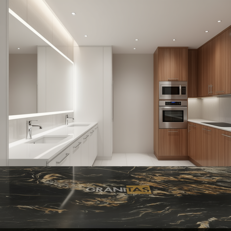 Encimeras de Piedra Natural para Cocina y Baño Personalizadas - Granito Carrara Calacata en Tamaños Prefabricados para Hoteles y Proyectos