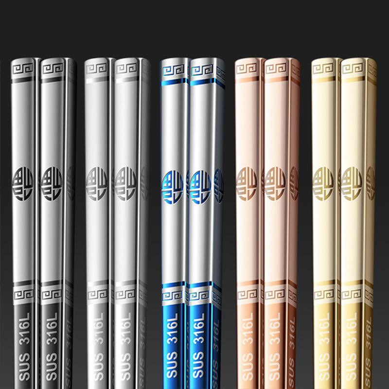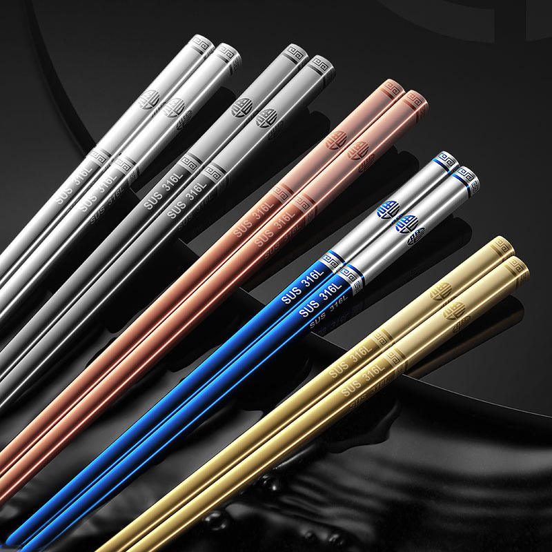 Cocina personalizada portátil 316 Acero inoxidable Sushi palillos Japón antideslizante reutilizable vajilla coreana