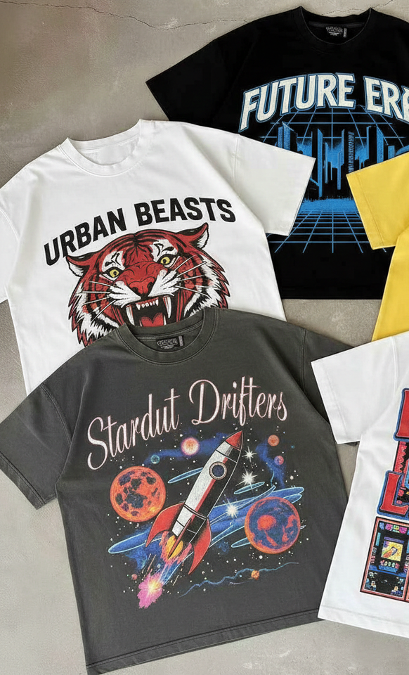Camiseta de punto personalizada con estampado animal de diamantes de imitación, lavado ácido vintage, cuello redondo, algodón 100% de alto gramaje, estampado DTG, corte regular