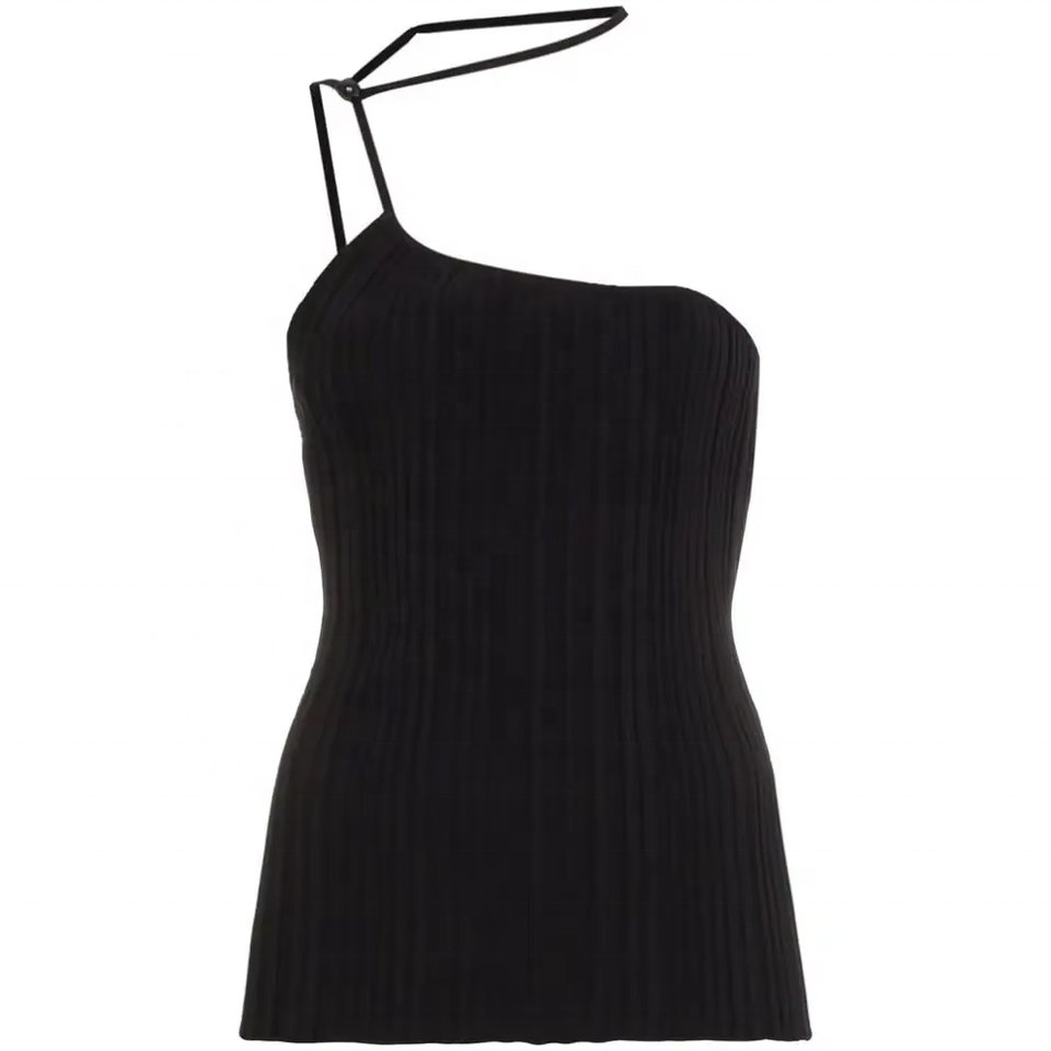 Tops de punto acanalados negros de verano personalizados, camisolas sexys de punto para mujer, chaleco de suéter de punto