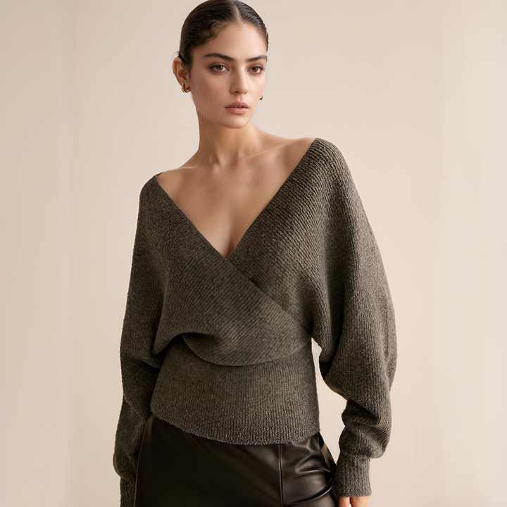 Suéter Cruzado de Punto Acanalado con Detalle de Cintura Ajustada para Mujer, Fabricante de Prendas de Punto Personalizadas