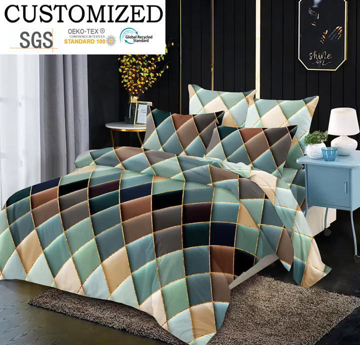 Juego de edredón de cama con patrón geométrico personalizado, funda nórdica, tamaño Queen King, 4 Uds., funda de edredón de algodón, juego de sábanas Bolsa de PVC o a petición del cliente. Sábana tamaño queen