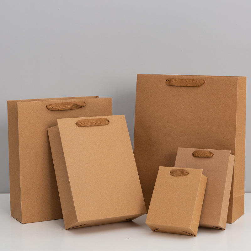 Bolsas de Papel Kraft Personalizadas con Asas de Cuerda de Algodón, Diseño de Fondo Plano, Impresión Flexográfica, Colores de Logotipo Personalizados, Se Aceptan Pedidos Personalizados