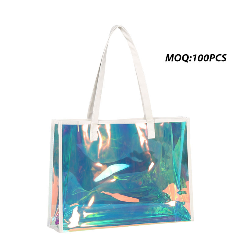 Bolso holográfico de PVC de tamaño L personalizado con logotipo impreso Bolso de señora y bolso de mano para bodas y regalos