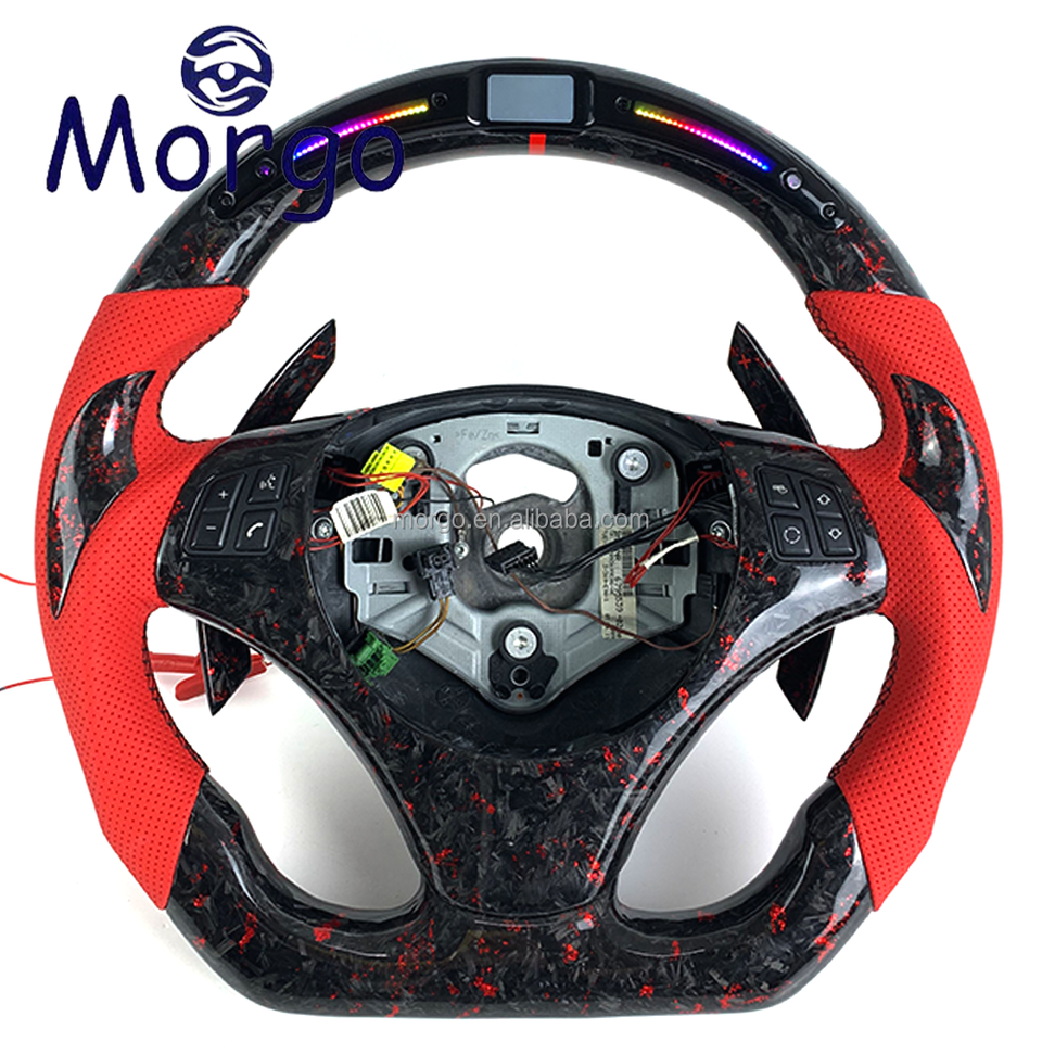 Volante de Fibra de Carbono Forjado con LED Personalizado para BMW E46 E36 E39 E90 E91 E92 E93 M3 con Levas de Cambio Estilo Racing