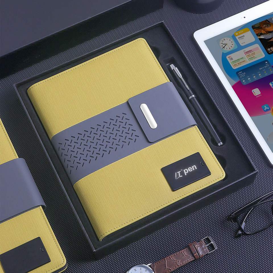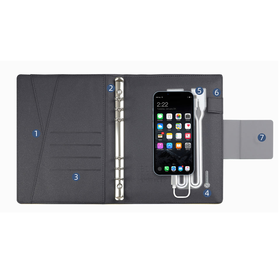 Nombre del producto:Cuaderno inteligente de cuero personalizado A5 con power bank, iluminación LED y logotipo