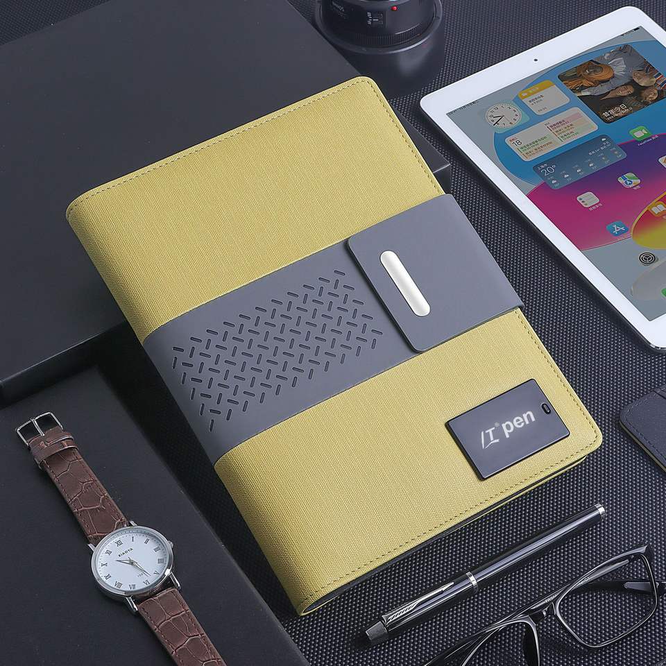 Cuaderno inteligente de cuero personalizado A5 con power bank, iluminación LED y logotipo