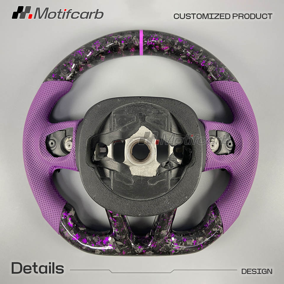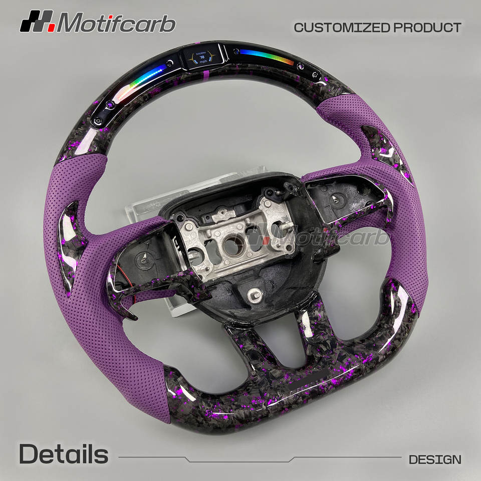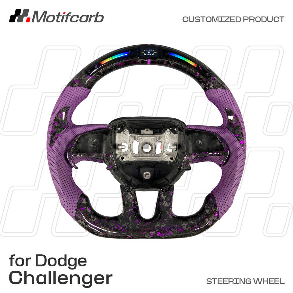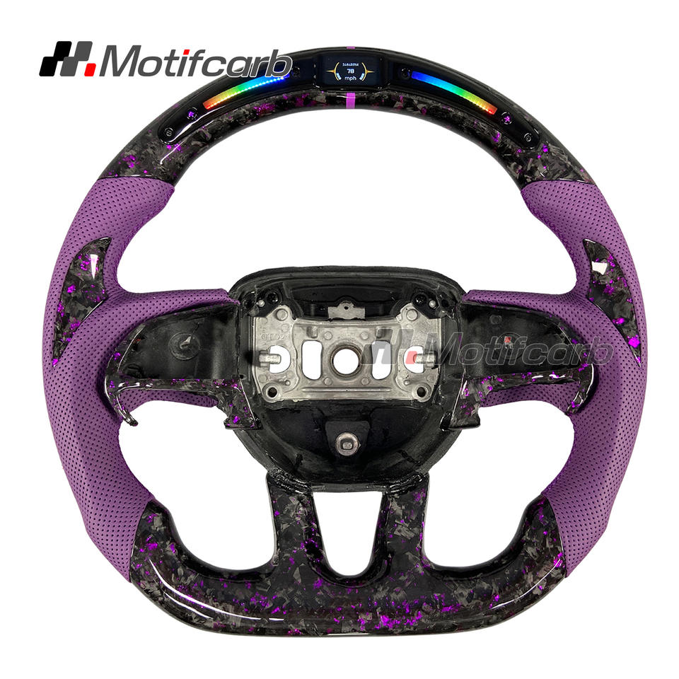 Volante Deportivo Personalizado de Cuero Morado y Fibra de Carbono Forjada con LED para Dodge Charger Challenger Hellcat SRT R/T GT SXT 2013-2023