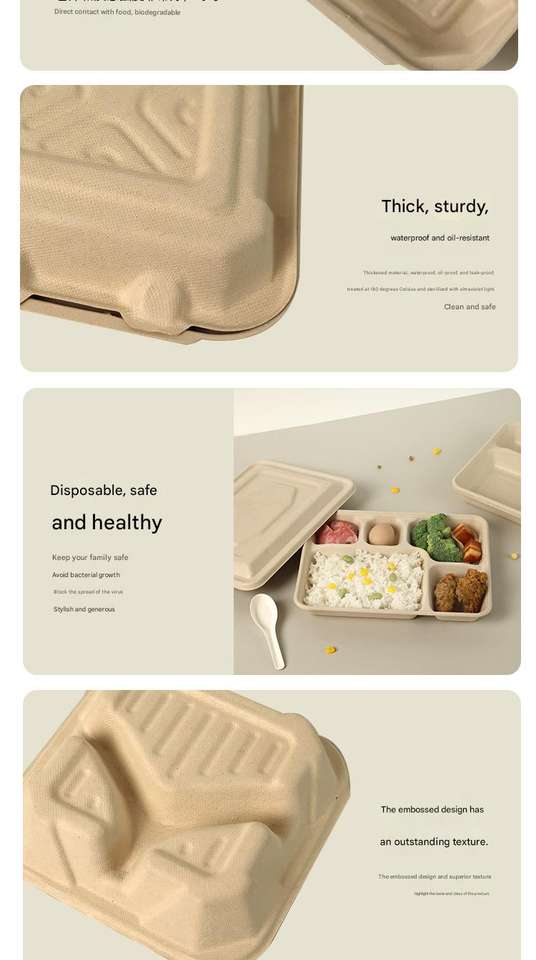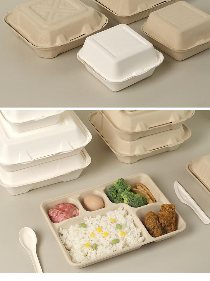 Envases de Alimentos Biodegradables y Compostables con Logotipo Personalizado, Contenedor de Alimentos de Pulpa de Fibra de Caña de Azúcar