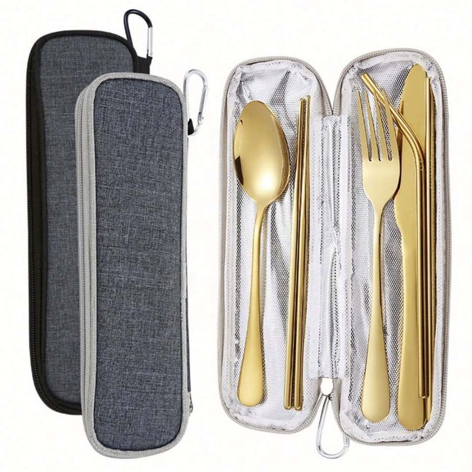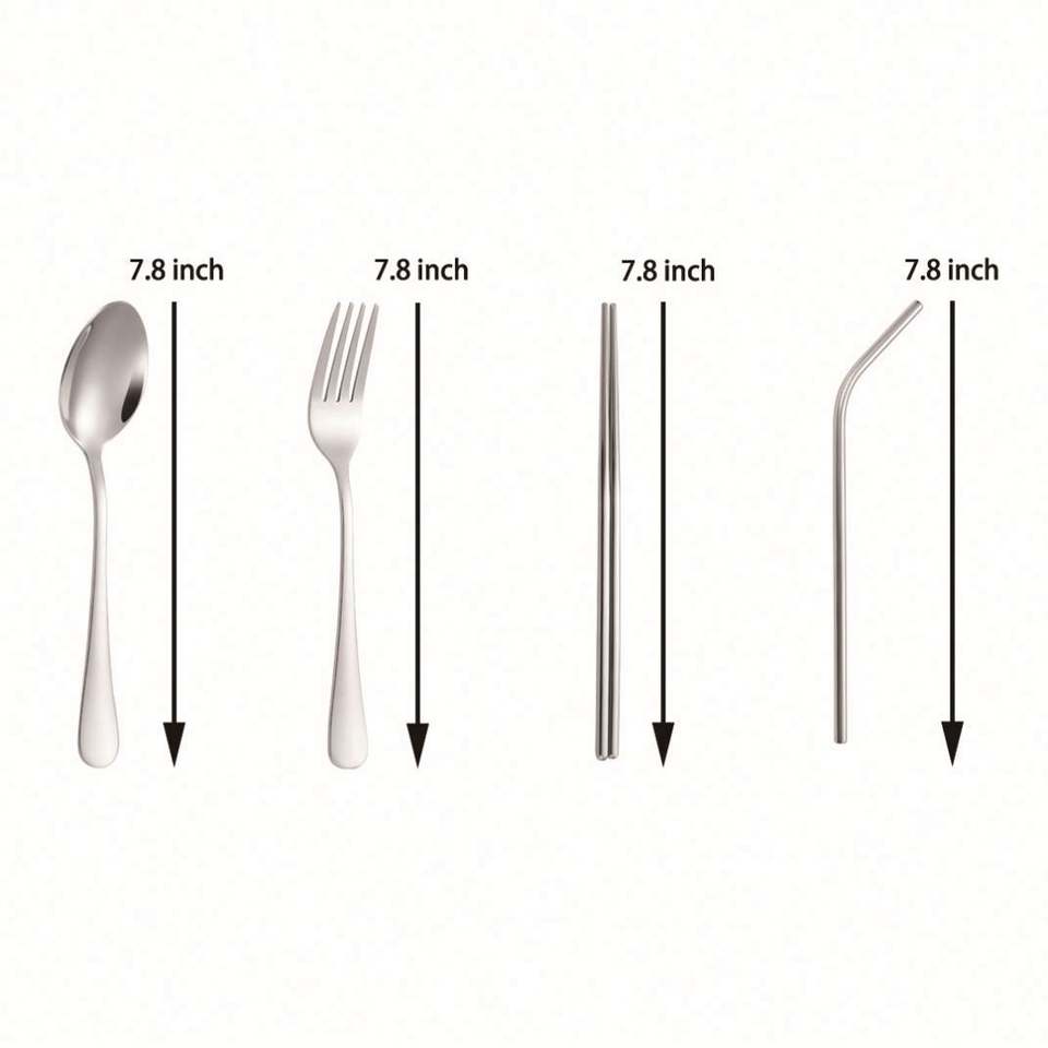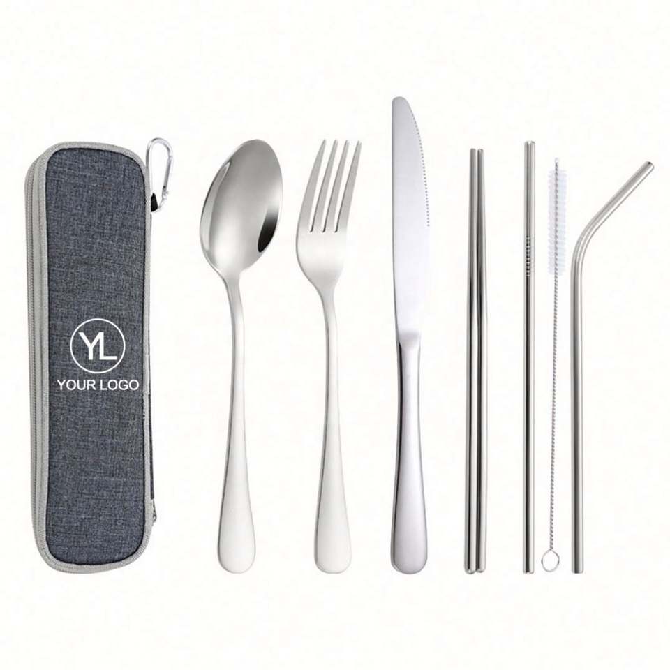 Juego de Cubiertos de Viaje de Acero Inoxidable Ecológico de 8 Piezas con Estuche, Personalizable con Logotipo, Portátil y Reutilizable
