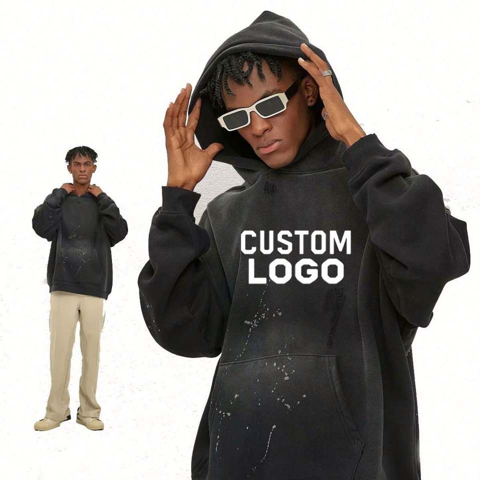 Sudadera Oversize de Felpa Gruesa de 500 g/m² con Estampado Animal Vintage, Bordado de LOGO Personalizado, Corte Holgado y Sin Cordones