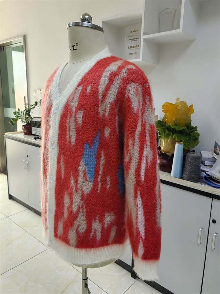 Chaqueta de hombre de punto Jacquard mezclada de algodón y lana degradada difusa con logotipo personalizado, cárdigan de invierno de Mohair peludo con botones